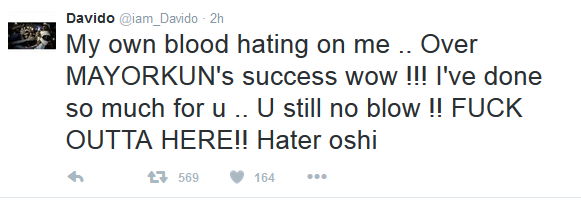 Davido is not happy with one of his family members